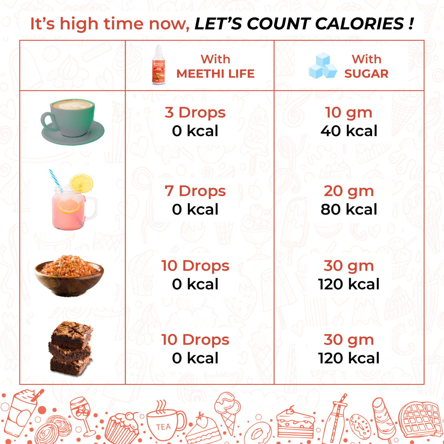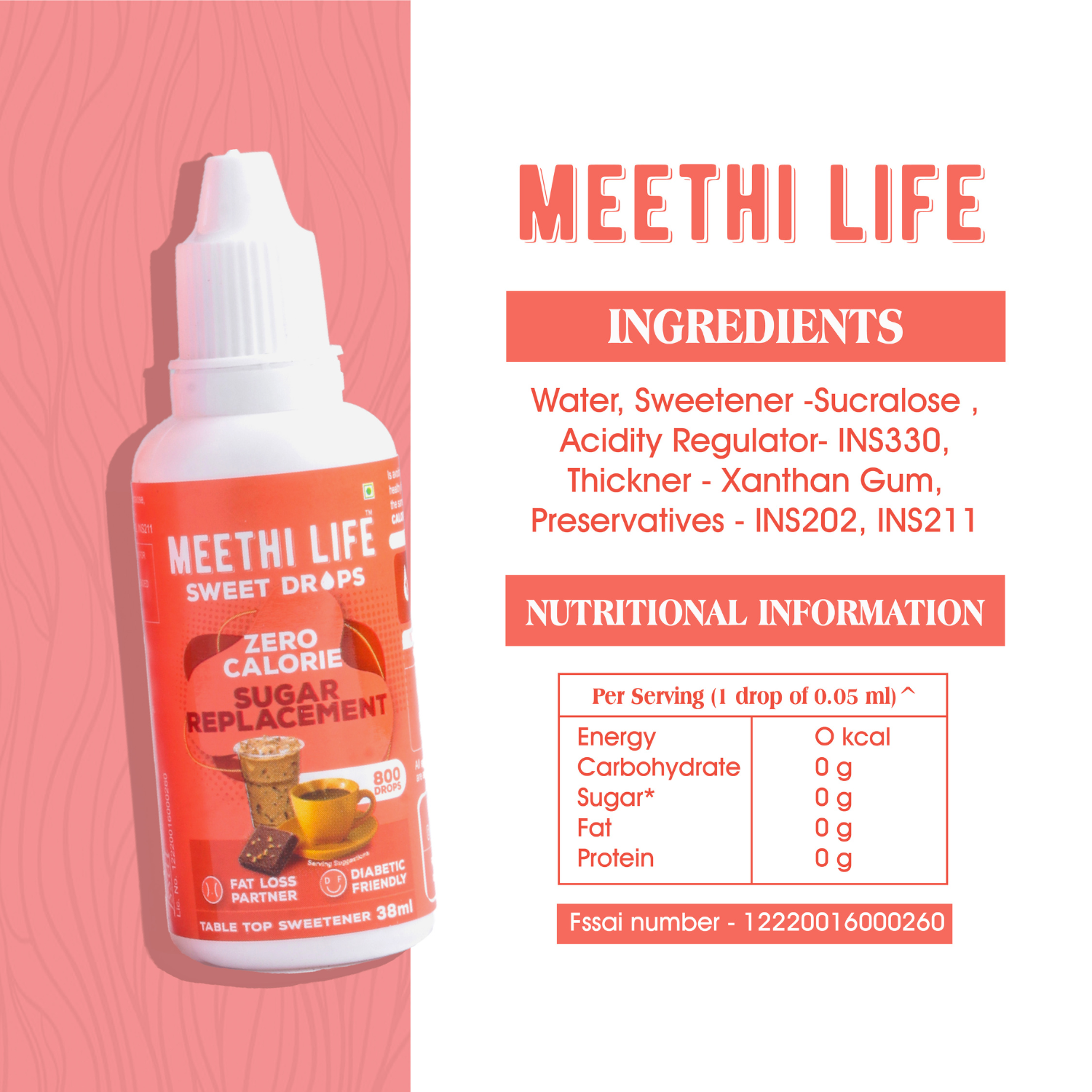 Use Meethi Life Drops in chai, coffee, desserts, and fruit juices for instant reliable sweetness.